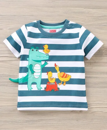 Half Sleeves T-Shirt & Shorts Set Animal & Stripes Print – Blue